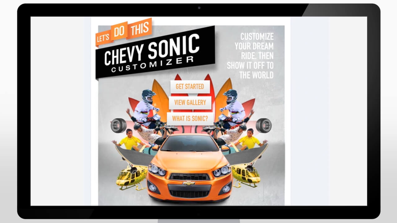 In response, we created an application that allows users to decorate and customize a Chevy Sonic car and share their creation with friends on Facebook, Twitter and via email.