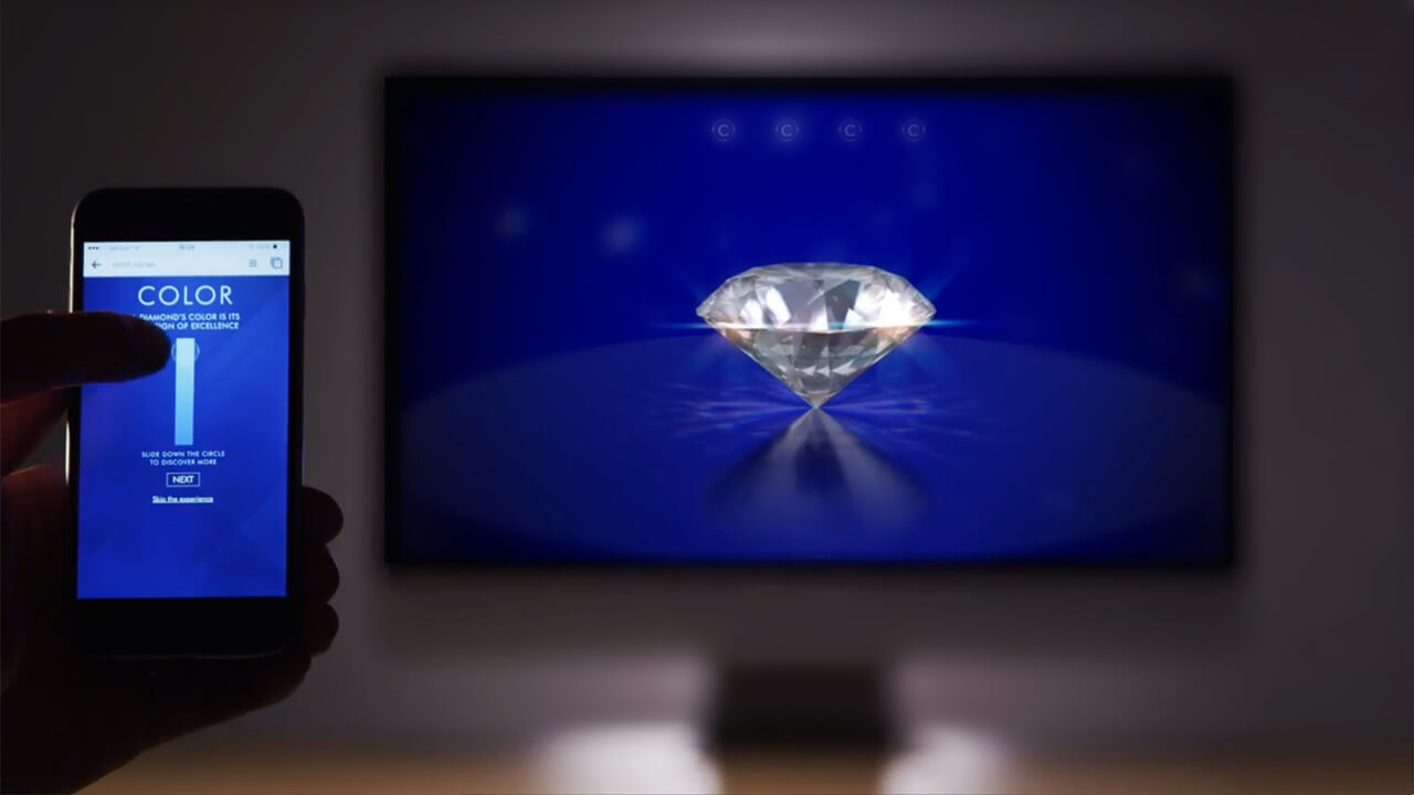 Our team also created an exclusive augmented reality tool for Sales Representatives to help communicate the brand’s unique features to retailers. When an iPad camera sees a pack of Parliament Carat, a series of animations are activated and the product pack is suddenly flanked by lustrous, shimmering diamonds and messaging that reflects the brand’s luxurious refinement. By clicking on the various diamonds users can further explore details of the 4 C’s.
