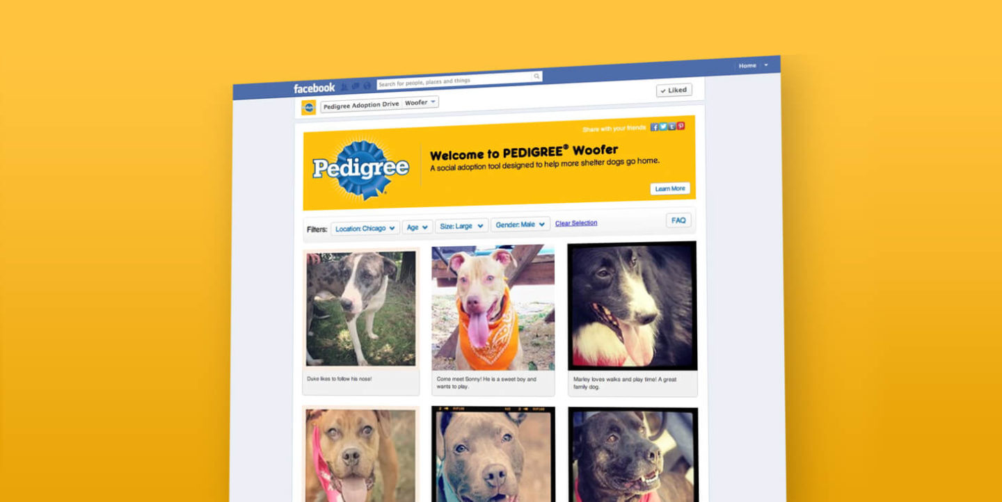 In response, we developed, Pedigree Woofer, a platform that helps people interested in pet adoption use social media to find their new best friend. We developed the experience leveraging our familiarity with the Facebook and Instagram platforms. Using Instagram, volunteers at animal shelters across the country were able to post photographs of the dogs they have available for adoption, along with descriptions and pertinent information, simply by using hashtags such as #male #poodle #3years.
