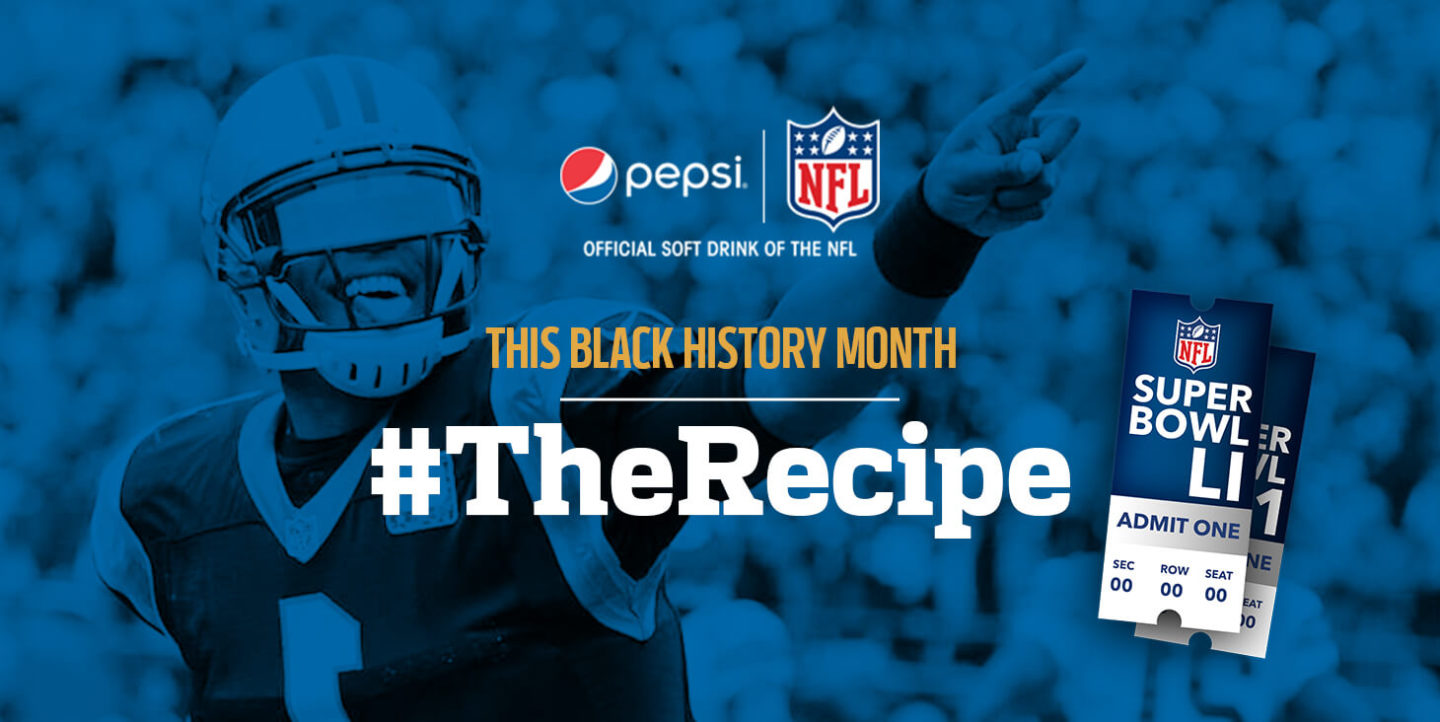 In honor of Black History Month, we teamed up with Pepsi and the NFL to give users the opportunity to share their recipe for a chance to win tickets to the Super Bowl LI in 2017. To help promote #‎TheRecipe campaign we engaged a team of celebrity history-makers – including Antonio Gates, Matte Forte, Marshawn Lynch, Teddy Bridgewater – to name just a few to take this campaign to the next level by sharing their personal recipe cards.